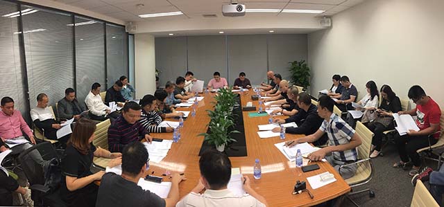2019年10月28日下午,在廣州白云綠地中心22樓會議室召開了落實實名制和工人工資支付分賬平臺管理的專題會議。會議由集團公司副總裁張旭毅主持,集團公司副總裁盧文權、工程管理中心、廣州區域公司工程部管理人員和廣州地區在建項目負責人參加了會議。會上,學習了《廣州市住房和城鄉建設局 廣州市人力資源和社會保障局關于實名制和工資支付分賬平臺化管理預警警示(2.0版)上線試運行及相關培訓工作的通知》的文件