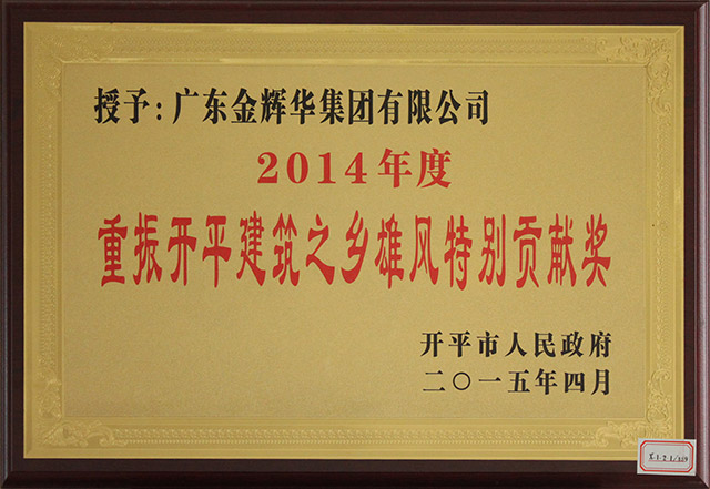 熱烈慶祝我公司榮獲重振開平建筑之鄉雄風特別貢獻獎