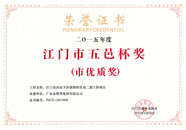 熱烈慶祝我公司榮獲江門市五邑杯獎