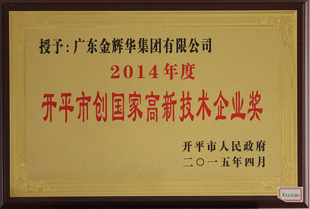 熱烈慶祝我公司榮獲開平市創國家高新技術企業獎