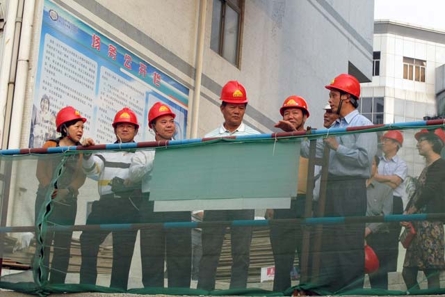 在黨的十八大召開之際,江門市政協主席趙基耀率隊視察了我集團公司總承包的江門市中心醫院外科住院大樓工程。2012年11月7日下午,政協主席趙基耀一行在市衛生局、中心醫院院長梁伯進等人的陪同下來到我集團公司江門市中心醫院外科住院大樓項目部現場,詳細詢問并了解工程的最新情況,我集團公司副總裁陳達華對工程的進度、質量、安全、施工環境、工人生活及工程對周邊居民的影響情況等進行了詳細的講解。 項目現場施工通