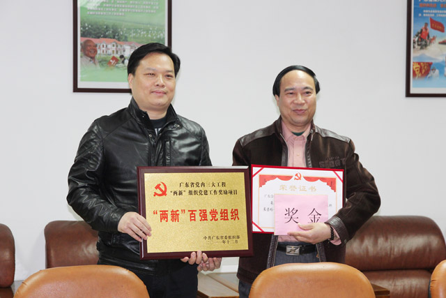 2012年3月12日下午,開平市常委、組織部部長葉銳箭,市政協(xié)副主席、長沙黨工委書記林國寧,組織部副部長譚雄輝等領導到我集團公司調研非公有制經濟組織黨組織建設情況,并向我集團黨委頒發(fā)廣東省“‘兩新’百強”黨組織牌匾。我集團自2009年12月成立黨委以來,認真貫徹“四好”標準,即“黨建工作好、工作業(yè)績好、群眾反映好、社會形象好”,以創(chuàng)先爭優(yōu)活動為抓手,切實加強黨員隊伍建設,發(fā)揮黨員先鋒模范作用,圍繞