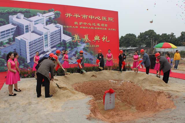 3月9日上午,我司承建的開平市中心醫(yī)院救護中心遷建項目奠基典禮在醫(yī)院西門工地隆重舉行。市人大副主任李寶貞同志、副市長梁民躍同志、政協(xié)副主席吉喆同志、中心醫(yī)院中層干部及我司項目班組成員等180多人了出典禮。救護中心遷建至中心醫(yī)院西側(cè),占地34.95畝,興建傳染科大樓四層、腫瘤科大樓七層、放療樓單層,總建筑面積19630平方米,建設工期計劃至2012年1月竣工。工程竣工后,將進一步改善醫(yī)療衛(wèi)生條件,提