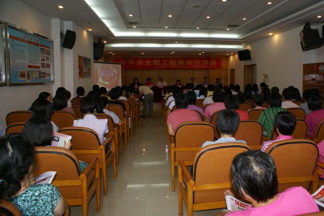 為了增強女職工的自我保健意識,普及女性生理健康知識,促進女職工的身心健康,7月16日下午,市總工會在廣東金輝華集團公司舉辦女職工健康知識講座,邀請全國健康素質教育工程活動公益講師團的孟優賢教授前來主講,共80多名女職工參加了講座。市總工會紀檢組長盧銳權,廣東金輝華集團公司黨委書記張解矛、工會主席陳維民分別作了講話。講座由市總工會女職委副主任許素群主持。