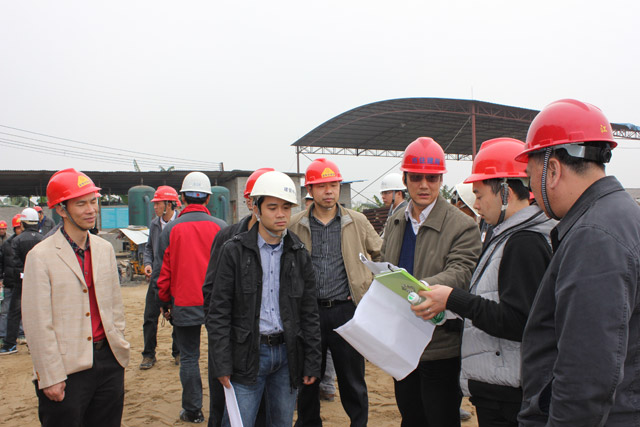 2月22日早上,江門市委書記劉海、市長龐國梅、副市長鐘軍、住建局局長馬克烈等一行人到我集團公司承建的江門市豐樂路北延線工程考察。