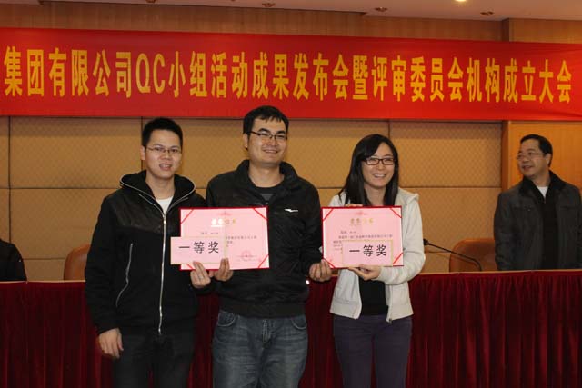 為進一步提升我集團公司工程建設質量管理水平和企業市場競爭力,激勵我司員工積極參與項目質量管理與創新活動,配合集團公司每年度的申報省(部)級、國家級質量管理小組稱號,并建立集團公司工程建設質量管理小組活動的長效機制,進而推動集團公司的工法課題的采集和編制工作。2012年12月18日,第一屆廣東金輝華集團有限公司QC成果活動發布會暨評審委員會機構成立大會在開平輝華樓會議室舉辦,總工室主任陳力夫、工程管理中心主任張解矛、副主任余志文、技術中心主任詹前進參加了發布會,本次發布會特邀廣東天竟建設有限公司總工盛克亞、項目經理張國勝、高級工程師樊代清三位QC質量管理專家擔任評委。