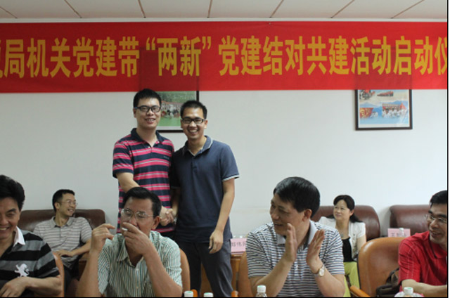 啟動儀式上,首先江門市國稅局的人員參觀了我集團的黨工青婦活動室、榮譽室。座談會上,雙方互相介紹了各自出席此次儀式的人員,后共建雙方的黨委分別對各自的黨委概況進行了介紹,使共建雙方更清楚地了解對方。儀式上,江門市國稅局機黨委向我集團黨委贈送了有關黨建工作的書籍,如十七大會議精神理解等。為切實實現共建目標,雙方根據各自黨支部的實際情況實現了江門市國稅局機關黨委各支部與我集團黨委各支部的共建結對,共同明確了通過結對共建活動目標:爭創全省乃至全國的‘兩新”組織黨建工作示范點。開平市委組織部劉威龍副部長在啟動儀式上,對“關于開展機關黨建帶‘兩新’黨建結對共建活動”的文件精神進行了解釋,并表示這是當前黨建的重要工作。長沙街道辦事處黨工委委員陳國強主任在啟動儀式上表示:將盡全力支持江門國稅局的“機關黨建帶‘兩新’黨建”的結對共建活動。