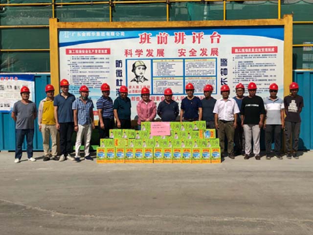 近期連續(xù)高溫,熱浪逼人, 7月17日上午,集團(tuán)公司工會(huì)聯(lián)合工程管理中心的同志們來到翰林印象花園及歐萊寶環(huán)保新材廠房項(xiàng)目施工現(xiàn)場,對(duì)在酷暑中堅(jiān)守崗位、辛勤勞動(dòng)的一線工人進(jìn)行了慰問,為他們送去防暑降溫物品。