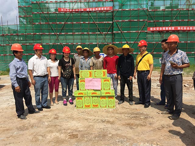 6月27日,由工會主席陳維民、工會副主席高迎春及公司黨群工作部有關人員帶隊到開平市金山小學、臺山行政中心、陽江“一河兩岸”城南西路及景觀示范段工程等施工生產現場為一線員工帶去絲絲清涼和滴滴關愛,送去涼茶、礦泉水等防暑降溫物品,送去公司的關懷和慰問。