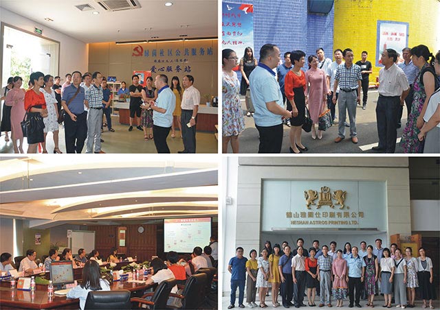 參觀鶴山雅圖仕印刷有限公司的生產(chǎn)區(qū)內(nèi)黨委工作室和生活區(qū)內(nèi)義工愛(ài)心服務(wù)站等黨建陣地