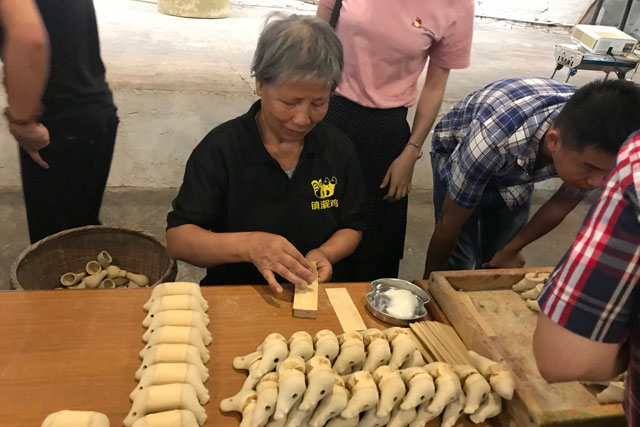 最后全體人員開車前往水口鎮(zhèn)聯(lián)竹村參觀開平非物質(zhì)文化鎮(zhèn)濠泥雞體驗(yàn)展。