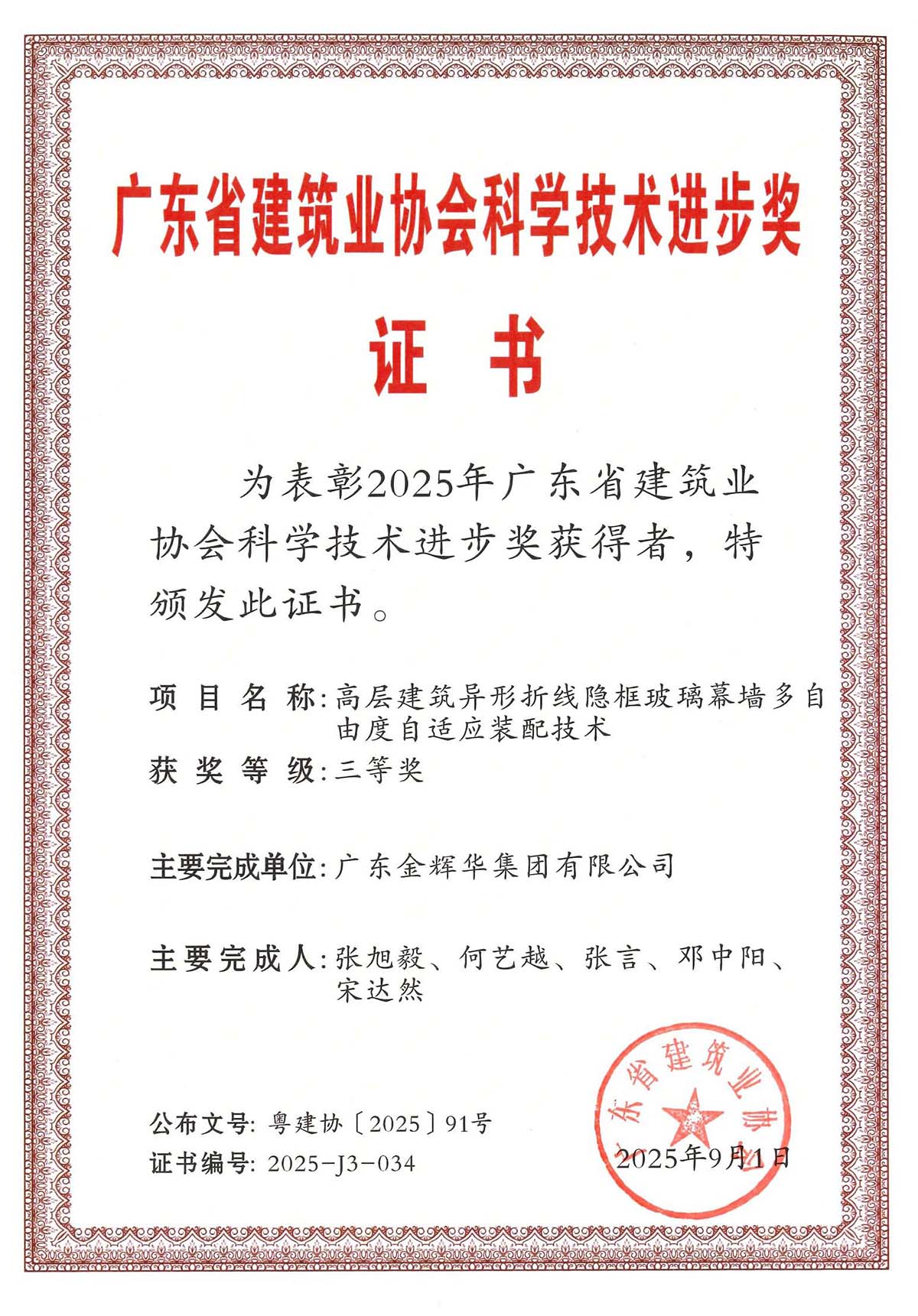 此次多項成果榮獲行業重要獎項,是對我們過去科技創新工作的肯定,更是激勵我們不斷前行的動力。未來,金輝華集團將繼續秉承科技引領、創新驅動的理念,緊盯行業前沿技術,不斷加強創新能力。我們將致力于打造更多具有核心競爭力的科技成果,為建筑行業的發展注入更多的金輝華智慧。