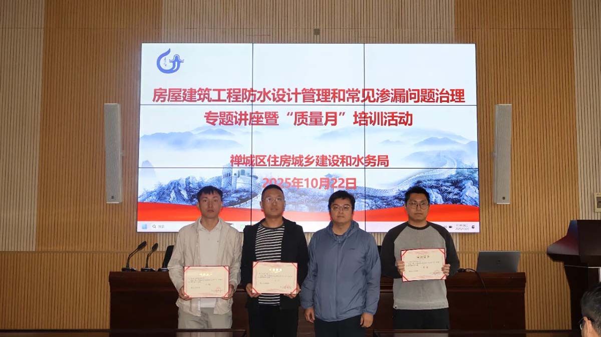 2025年10月22日,佛山市禪城區房屋建筑工程防水設計管理和常見滲漏問題治理專題講座暨 “質量月” 培訓活動,于佛山市禪城區建筑業協會101會議室圓滿落幕。金輝華集團積極參與其中,憑借卓越的表現和扎實的專業功底,在競爭激烈的防滲漏質量管理知識競賽中榮膺桂冠,斬獲一等獎。