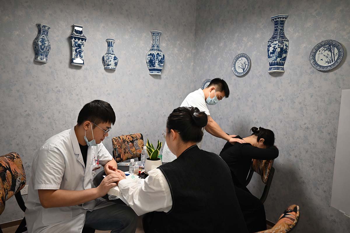 此次活動特別邀請了南方醫科大學中西醫院專家為員工們提供一對一現場面診和健康咨詢。專家醫生通過觸診、把脈等方法,對看診員工進行針對性的健康分析,提供專業的就醫意見,并根據員工情況進行簡易中式理療,包括按摩、針灸、刮痧等,護航員工身體健康。